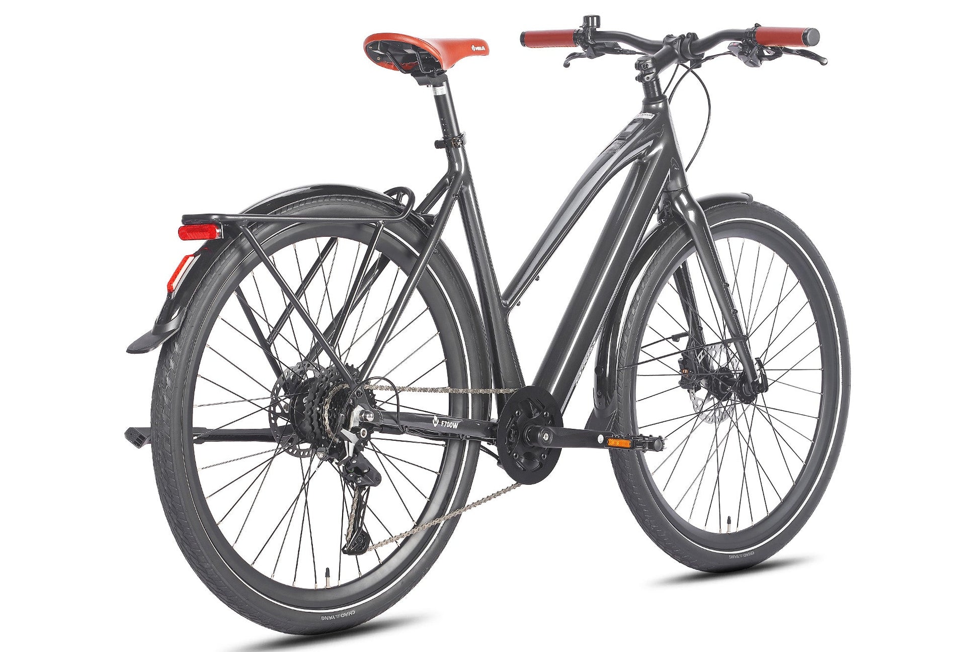 The F700W is fitted with Chaoyang 700x42C city tires, designed specifically for urban streets and light gravel paths. They provide excellent stability and grip.