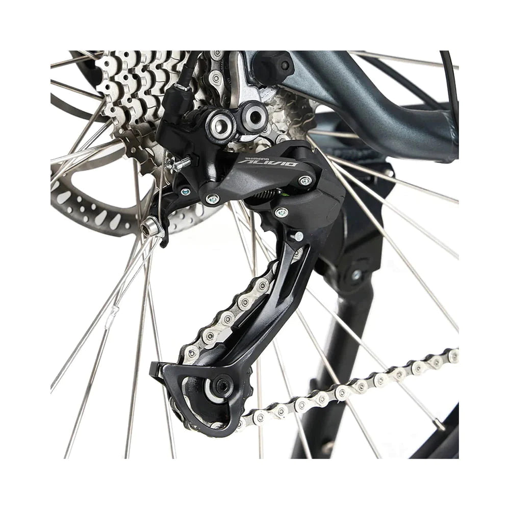 The Shimano 7-speed derailleur ensures smooth and reliable shifting and offers a variety of adjustment options for different road conditions.