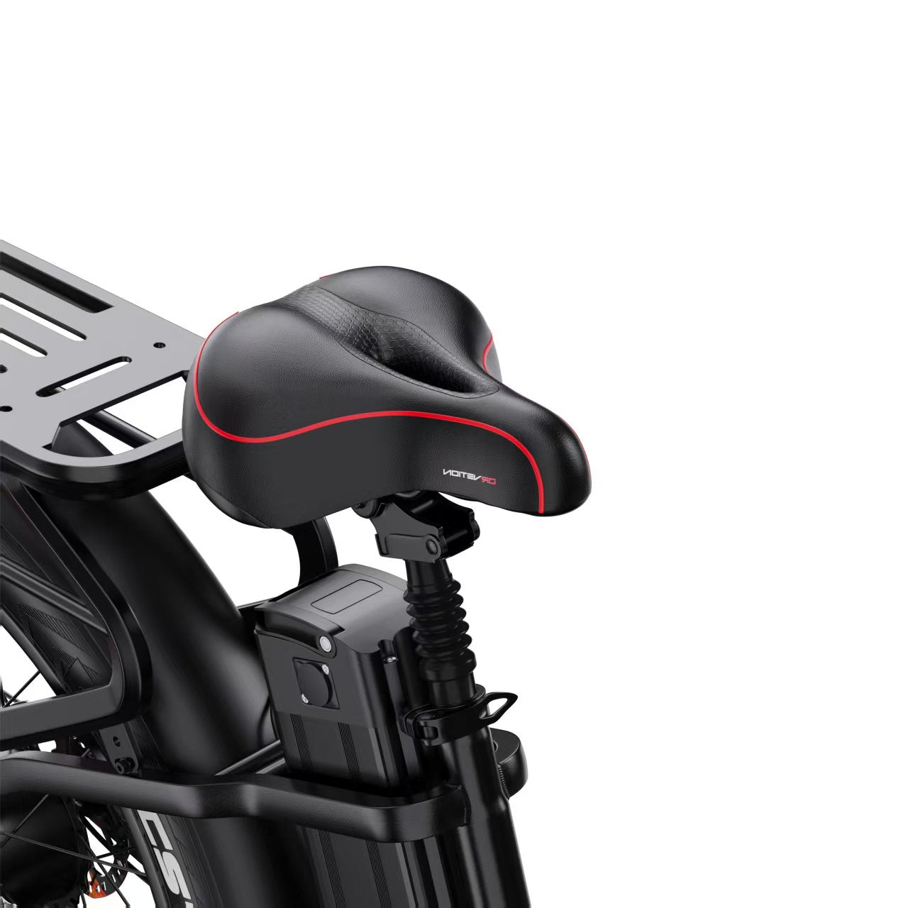 Siège Confort Surdimensionné avec élastomère absorbant les chocs. Il s'agit d'un siège en mousse léger fabriqué en cuir artificiel imperméable de haute qualité et rempli d'une fonction de décompression, vous offrant une expérience très confortable. Le ressort en tour ED de la base de la selle élimine les vibrations de la route ou de la surface qui sont généralement transmises directement à la colonne vertébrale, vous aidant à conduire plus en douceur et confortablement sur des routes tout-terrain ou plates.