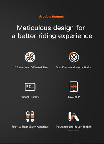 A scooter elétrica tem um rack de direção telescópico duplo, que não só se ajusta à altura do piloto, mas também torna o controle da scooter mais preciso e suave.