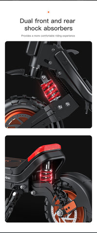O modelo de motor duplo tem uma potência nominal total de 2400W, a velocidade máxima chega a 25km/h.